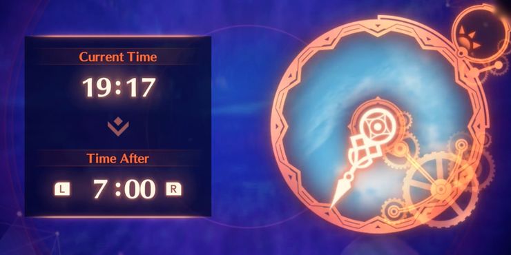 Hora de cambio de apertura en Xenoblade crónicas 3 mostrará una nueva pantalla con un reloj de una mano a la derecha y dígitos a la izquierda, revelando la hora actual y la hora posterior del juego. Los jugadores pueden usar los botones L y R para cambiar el tiempo por hora y ver los resultados en Tiempo después. No importa el “minuto” de la hora actual, el cambio visible en la hora posterior siempre será a las “en punto”. Una vez que los fanáticos han establecido la hora que desean, pueden presionar el Botón A, lo que hace que la pantalla regrese al mundo, mostrando que la hora del día se ha modificado en Xenoblade crónicas 3.