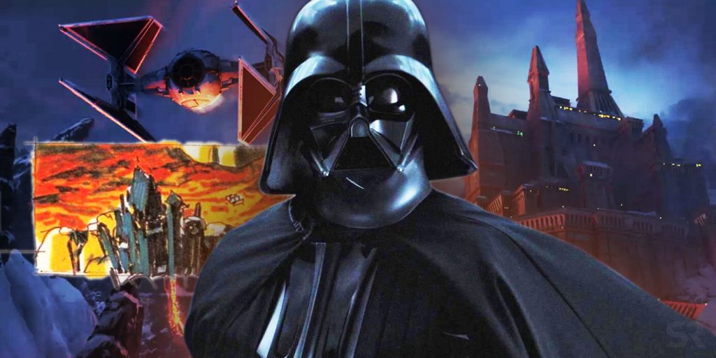 La idea del castillo de Darth Vader se remonta a 1978 y el plan de historia temprana para El imperio Contraataca. Incluso antes del primer borrador (que aún estaba por presentar el gran giro que Darth Vader era el padre de Luke), George Lucas y el guionista original Leigh Brackett exploraron la idea de que el villano principal de la película tuviera alguna forma de castillo en un campo de lava (junto con sugerencias). podría estar en un planeta de nieve). La idea se mantuvo en el punto de que Ralph McQuarrie se burló de un concepto de arte básico que daba una idea de la construcción. Por supuesto, el plan cambió dramáticamente y Darth Vader terminó residiendo en su Super Star Destroyer, Executor, aunque eso sí evoca visualmente el arte del castillo.