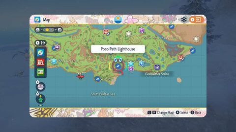 Vuela al esquina noreste del mapa de Paldea. Habrá una muy pequeña playa con algunas pequeñas islas frente a la costa. Se puede encontrar a Lugia nadando a su alrededor.