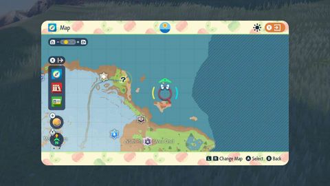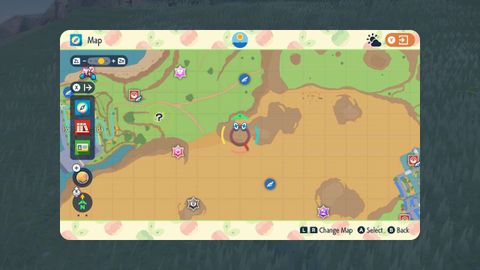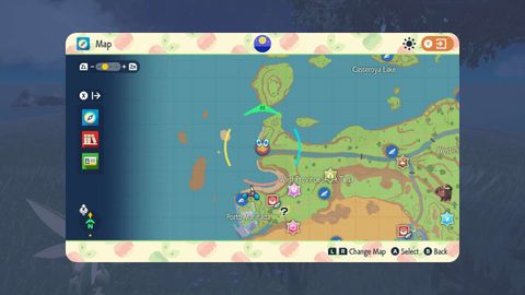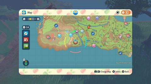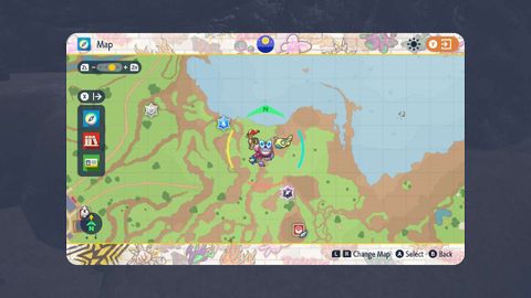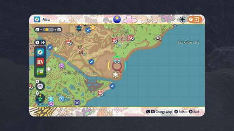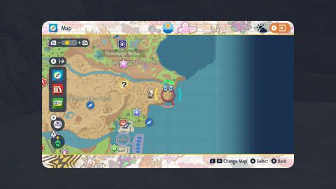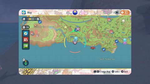 Vuela al Torre de vigilancia de la provincia sur y dirígete directamente al sur hasta el pequeño trozo de arena en la costa para encontrar a Latias a lo largo de la costa. Es la costa arenosa más occidental a lo largo del costa sur de paldea.