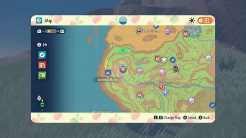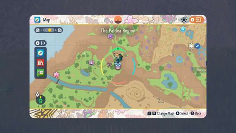 Directamente al norte del Gran Cráter de Paldea en Pokémon Escarlata y Violetalos jugadores encontrarán una de las piedras pequeñas restos al oeste de la Pasaje Dalizapa punto. Spectrier está parado frente a estas ruinas.