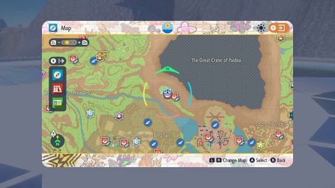Rayquaza es quizás uno de los Pokémon más altos para rastrear, ya que descansa sobre el borde del gran cráter de Paldea. Dirígete al Borde sureste del cráter para encontrar a Rayquaza esperando.