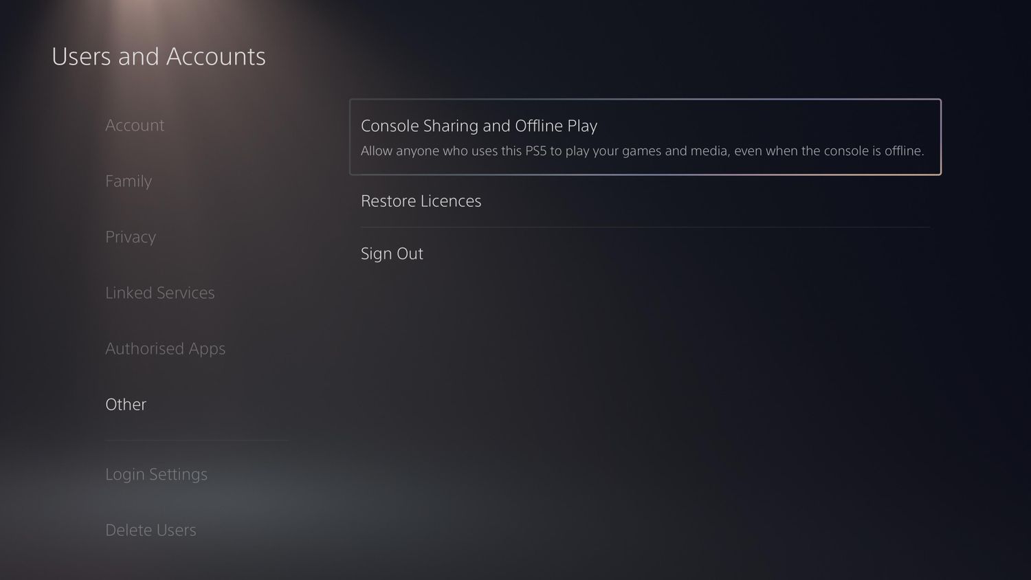 - Seleccione la pestaña Otro y navegue hasta la Opción para compartir consola y jugar sin conexión.