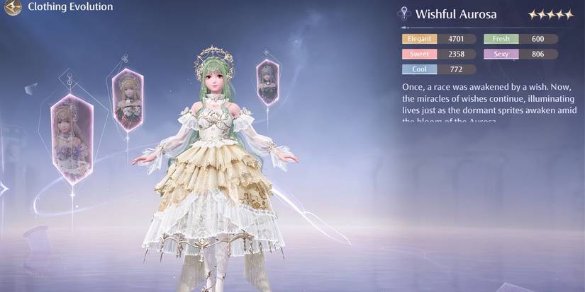 El primer Miracle Outfit que los jugadores pueden obtener en Infinito Nikki es el conjunto de Wishful Aurosa. Este elegante atuendo no sólo es esencial para el juego y puede aumentar enormemente las estadísticas en algunas categorías, sino que también es una hermosa adición al guardarropa de cualquier jugador. Hay muchas partes en su proceso de elaboración, así que prepárate para correr por Miraland en busca de cada pieza necesaria para su gran rompecabezas. Dado que la vestimenta es un componente principal, el conjunto de 5 estrellas Wishful Aurosa es parte de esa parte importante de Infinito Nikki.
