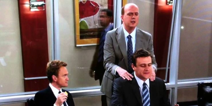Cuando Marshall se preocupa por perder su trabajo en el Goliath National Bank, Barney le da algunos consejos. Él le advierte que no sea como el espeluznante Back Rub Guy al que le gusta dar masajes en la espalda a todo el mundo.