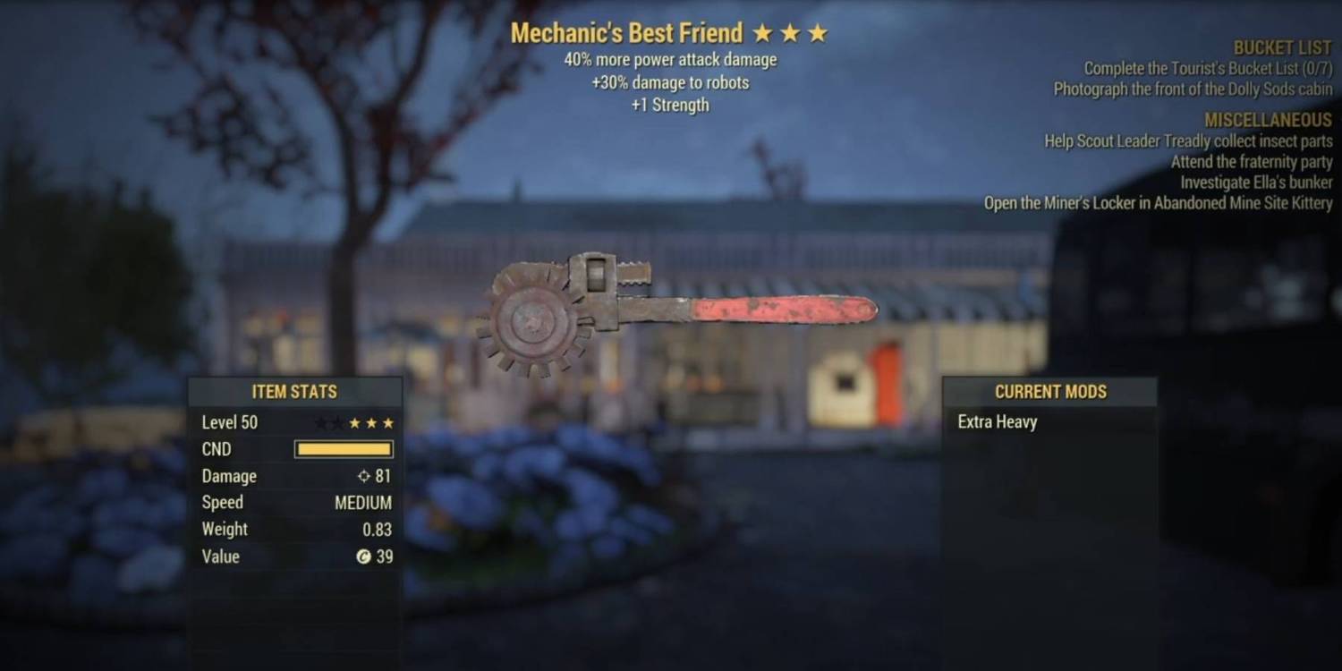 Destruir todos los tipos de robots necesarios te dará el arma, que tiene tres efectos legendarios que se garantizan que se aplicarán a la herramienta. Esta arma cuerpo a cuerpo tiene 40% más daño de poder, causa +30% de daño a los robotsy le da a tu personaje +1 Fuerza. Lograr conseguir al mejor amigo del mecánico hará que tu viaje por el páramo sea mucho más fácil en Caer 76 mientras continúas enfrentándote a enemigos fuertes en el modo Supervivencia.