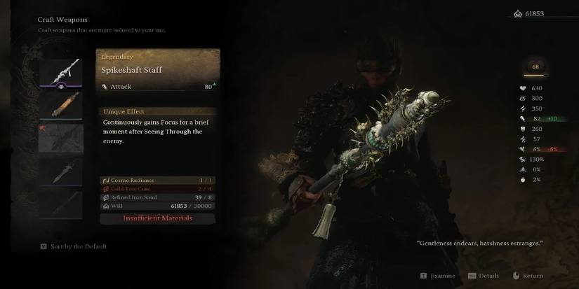 La arena de hierro refinada también puede Actualizar el personal a personal Kang-JinEl bastón Kang-Jin tiene un ataque de 70 y tiene un 6% más de probabilidad de golpe críticoOtros dos bastones que requieren arena de hierro refinada son uno de los mejores bastones legendarios, el bastón de mango de púas, y el bastón de sabio de rata. Los ingredientes para cada uno de estos bastones son los siguientes:
