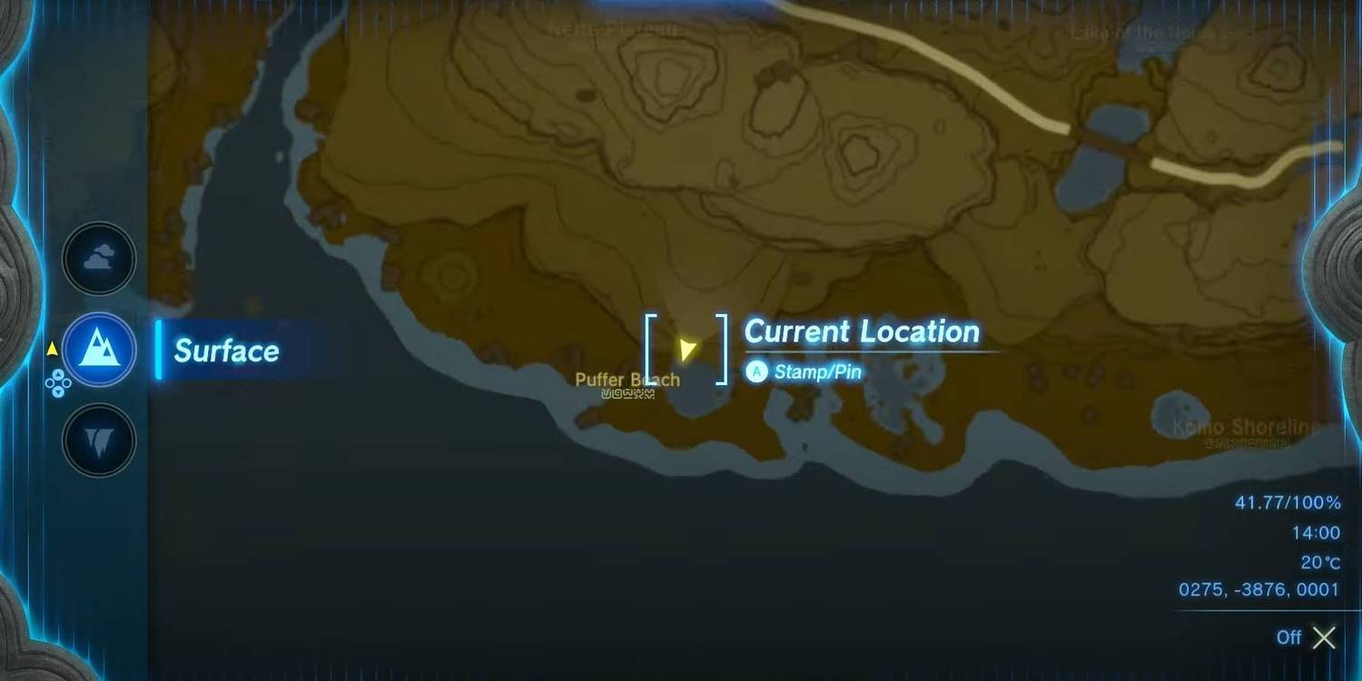 Los jugadores pueden comenzar a buscar el casco fantasma cerca Playa Pufferuna ubicación más amplia asentada alrededor del coordenadas (0293, -3848, 0004). Esta región se encuentra sur de Hyrule, justo después del Santuario Utsushok, que puede utilizarse como punto de viaje rápido si ya está completado. La playa domina un océano más amplio, donde varios dispositivos Zonai en Zelda: Lágrimas del Reino se pueden encontrar esparcidos a lo largo de la arena para que Link los recoja y los use para alcanzar la armadura.