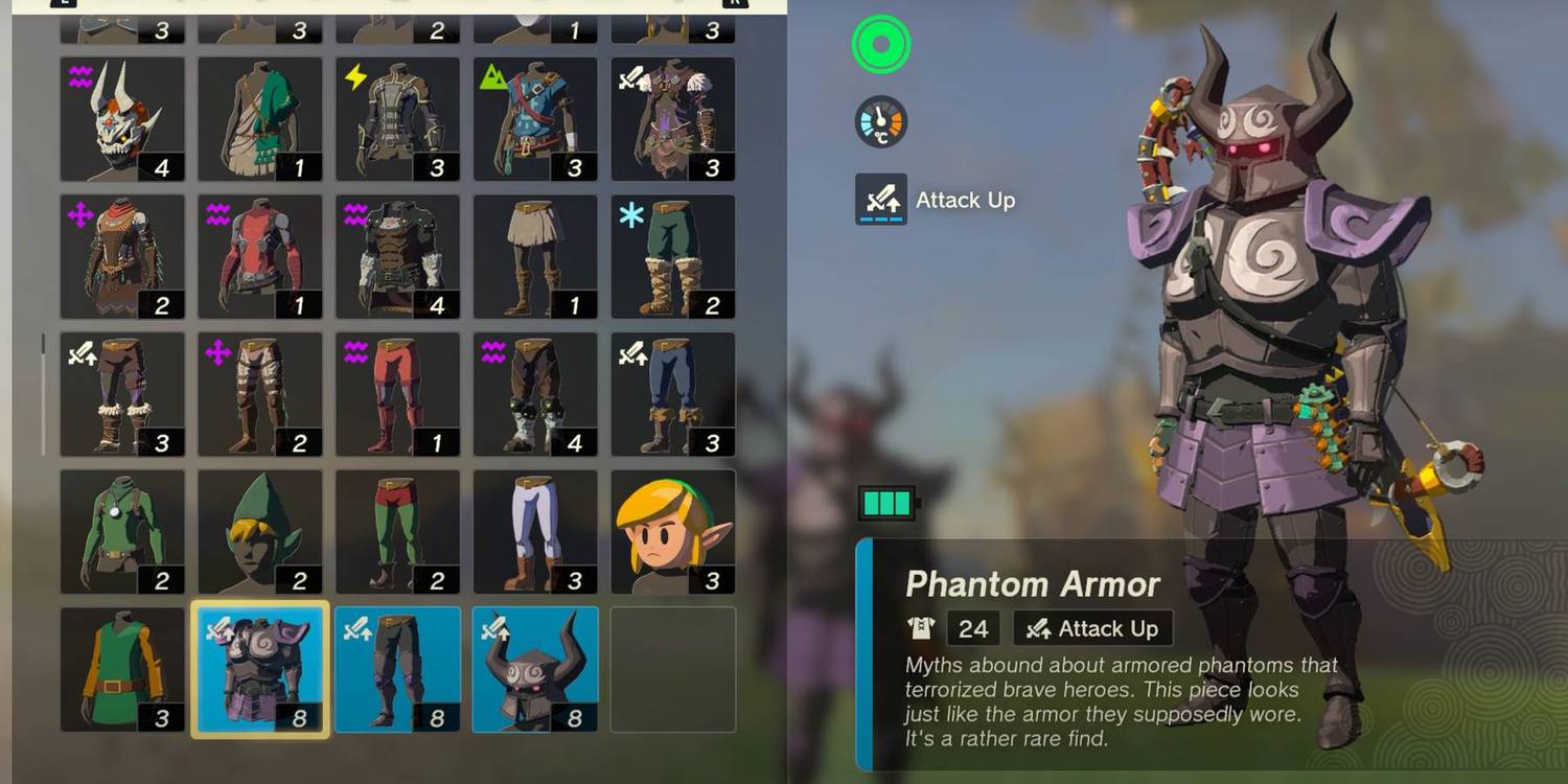 Tres piezas de la armadura fantasma ambientadas en La leyenda de Zelda: Lágrimas del Reino puede permitir a los jugadores obtener una de las defensas básicas más altas contra los ataques de los peligrosos enemigos de Hyrule. El conjunto se divide en casco fantasma, armadura fantasma y grebas fantasma..