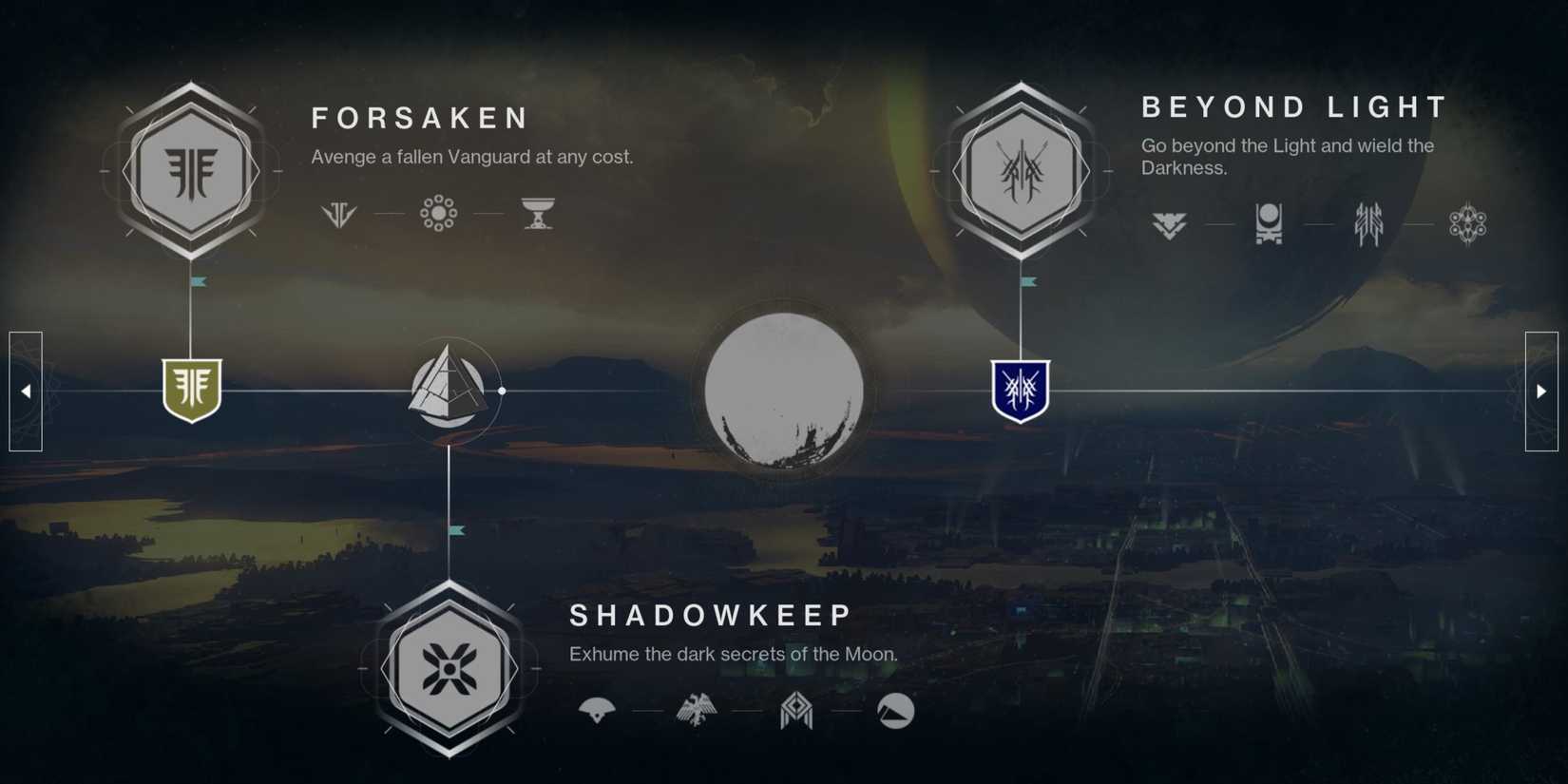 Para completar el triunfo dos, tendrás que lanzar Destino 2Línea de tiempo, la sección del Director que alberga todos los momentos principales de la historia del juego. De Guerra roja a La forma finalLos Guardianes pueden usar la Línea de Tiempo para revivir misiones importantes de algunos de los DLC del juego. Aunque no puedes jugar ninguna misión de ningún DLC que quieras, el juego te permite jugar una misión de cada uno de ellos. “Abandonado”, “Más allá de la luz”, “La reina bruja”, y “Caída de luz.”