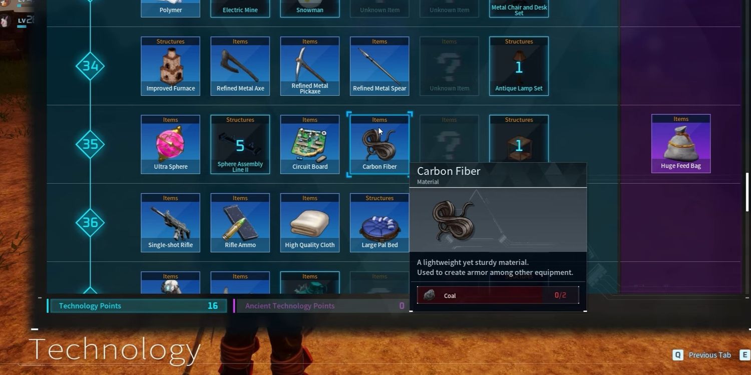 Para hacer tu propia Fibra de Carbono, tendrás que construir un Línea de montaje de producción que se puede desbloquear en el Árbol de Tecnología en mundo pal. Una vez construido, los jugadores pueden crear varias cosas nuevas, pero la fibra de carbono es una de ellas. La pregunta es qué tan caro será fabricar esa fibra de carbono una vez que puedas, ya que otros materiales de elaboración simples como Clavos puede resultar bastante caro.