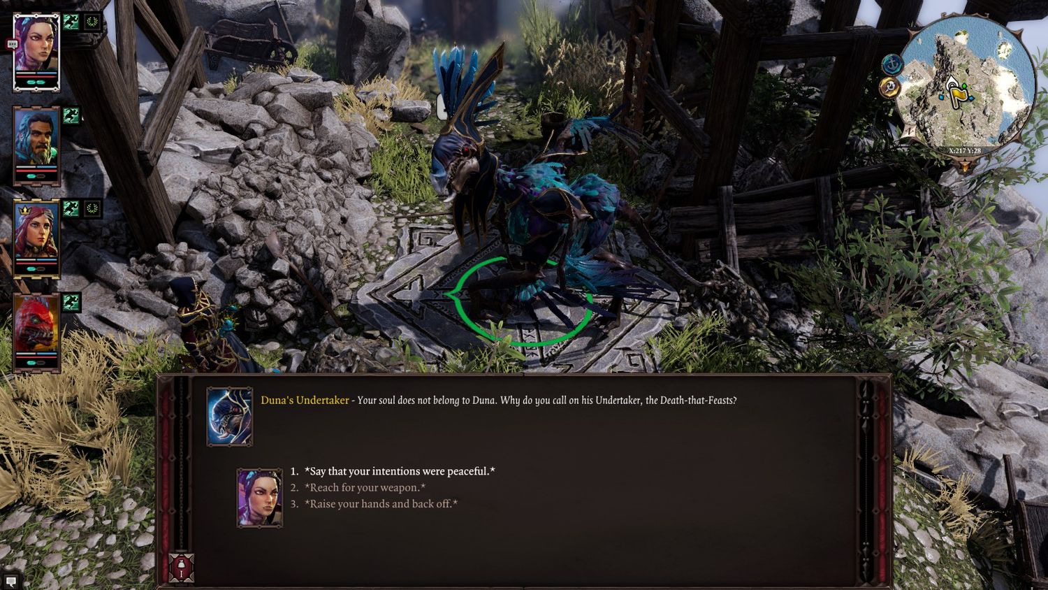 Lleva la carne infundida con fuente a la ubicación. X: 218, Y: 33, más conocido como el sitio de excavación de Mordus. Una vez que lleves la carne a esta ubicación, aparecerá Duna’s Undertaker. enemigos nivel 15. Tendrás que derrotarlos a todos con precaución, ya que pueden resistir. daño aéreo.