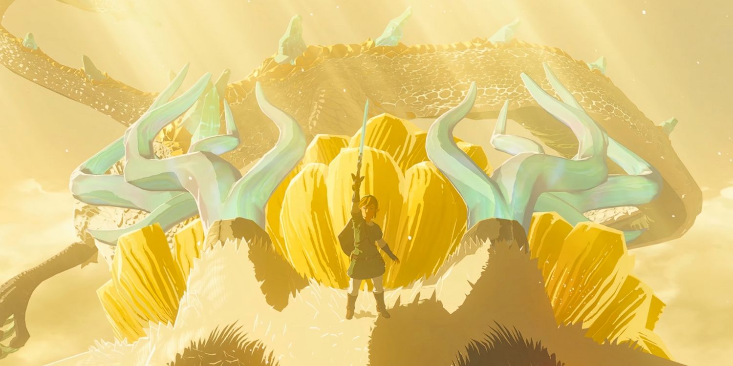 Una vez que parezca que Link está a punto de romperse, el Dragón se detendrá y la Espada Maestra será arrancada del Dragón de Luz. Seguirá una escena y luego Link podrá continuar. La Leyenda de Zelda: Lágrimas del Reino viaje con la Espada Maestra a su lado.