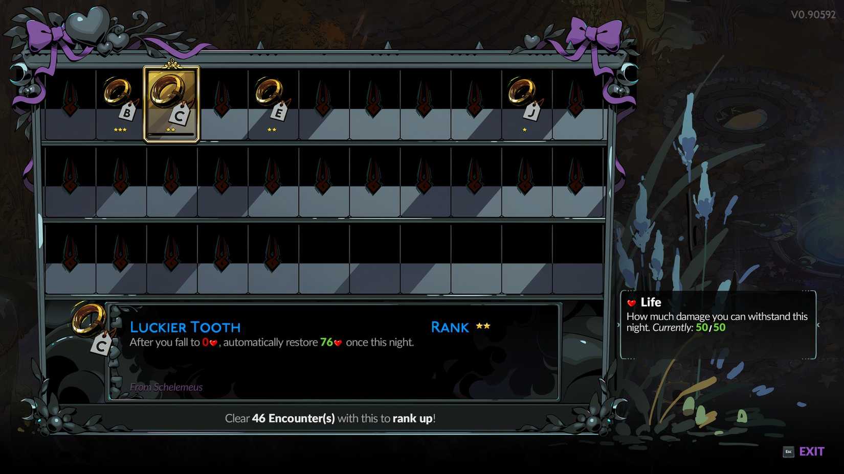 Tanto Schelemeus como Moros dan recuerdos que también otorgan Death Defiance. Para obtener un recuerdo de cualquier NPC en infierno 2, todo lo que necesitas hacer es regalarles Néctar de los Dioses. De los dos Luckier Tooth hay una versión significativamente mejor del mismo Keepsake relativo.