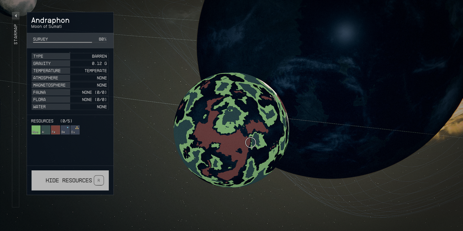 Lo antes mencionado youtuber astrosivo sugiere el luna de Andraphon en el Sistema Narion. En Andraphon hay vetas de aluminio y hierro muy juntas que se pueden extraer en un solo puesto avanzado. Encuentra un lugar donde parezca que las montañas se encuentran con el desierto.que se puede comprobar moviendo el cursor sobre el planeta hasta poder ver ambos entornos resaltados sin apenas moverlo.