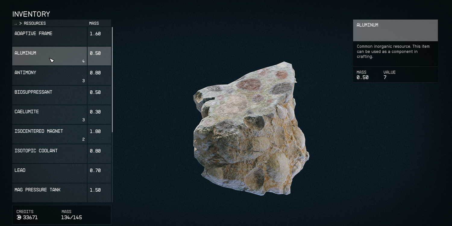 Es probable que para cuando Los jugadores han visitado el Lodge. que ya tienen algunos recursos, ya sea saqueando enemigos muertos o extrayendo algunos de los materiales disponibles en los planetas que visitas en las primeras horas del juego. Es muy posible que los jugadores ya tengan pequeñas pilas de Aluminio y Hierro en su almacenamiento personal o de barco.mi.
