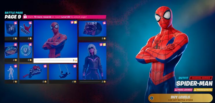 En Fortnite En el Capítulo 3, los jugadores pueden desbloquear un aspecto tradicional de Spider-Man, así como Symbiote Spider-Man y Future Foundation Spider-Man. Los jugadores necesitarán FortnitePase de batalla, que cuesta 950 V-Bucks, para comenzar a desbloquear recompensas. Para obtener la primera máscara de Spider-Man, los jugadores deberán alcanzar el nivel 80 o desbloquear 75 recompensas. Hacer cualquiera de los dos les dará a los jugadores acceso a la página nueve, donde pueden desbloquear a Spider-Man por nueve estrellas de batalla.