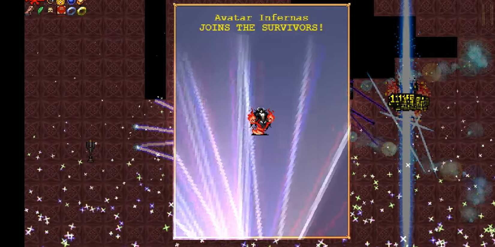 Uno de los últimos personajes jugables que los jugadores probablemente desbloquearán cerca del final de su aventura en Supervivientes de vampiros es Avatar Infernas, un vampiro extremadamente formidable que ofrece una alta escalabilidad final para etapas difíciles. Más específicamente, Avatar puede ganar indefinidamente poder, maldición, velocidad de movimiento y tiempo de reutilización. reducción sin tope. Además, este personaje comienza cada etapa con mayor HP máximo, poder, suerte, imán, repetición y un avivamiento adicional. Si los jugadores quieren superar algunas de las etapas más desafiantes en modos de dificultad extrema, Avatar es una de las mejores opciones para el trabajo.