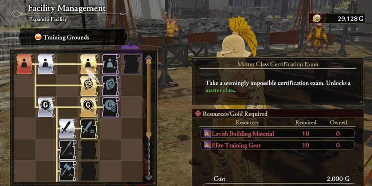 Para desbloquear Master Classes en Fire Emblem Warriors: Tres esperanzas, ve al campamento. En el menú de acceso rápido, haga clic en Instructor de entrenamiento para hablar con él en los campos de entrenamiento. Vaya a Adquirir clase, y los jugadores pueden actualizar las Clases aquí desde Principiante, Intermedio, Avanzado y, finalmente, Clases magistrales. Las clases magistrales no están disponibles hasta al menos el capítulo 10. Una vez que los jugadores puedan ascender a la clase magistral, complete el examen de certificación de maestro, que requiere 10 materiales de construcción lujosos, 10 equipos de entrenamiento de élite y 2000 de oro. Las Master Classes ahora se desbloquearán y los jugadores podrán mejorar sus personajes con un Master Seal. Además de los personajes de la historia principal, los jugadores pueden actualizar los personajes ocultos en Fire Emblem Warriors: Tres esperanzas.