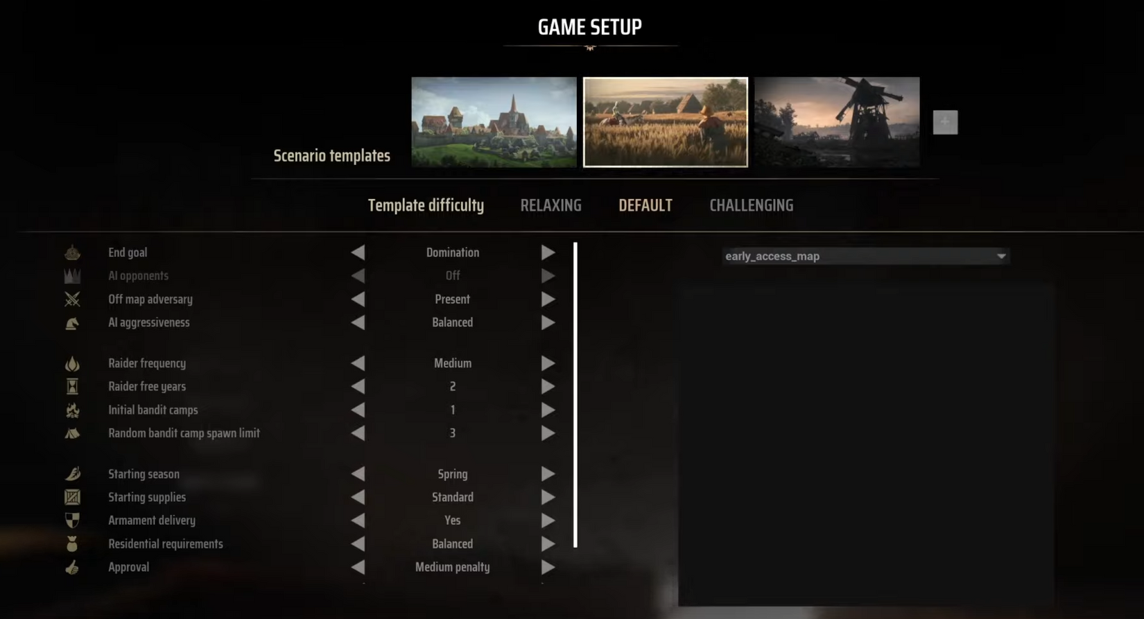 Dado que no hay un modo sandbox dedicado en Señores señorialesaún deberás elegir uno de los tres escenarios preestablecidos. Restaurar la paz es el mejor escenario para jugar en modo sandbox. Esta es la versión más equilibrada del juego y proporciona una combinación perfecta de secciones de construcción, gestión y combate de ciudades.