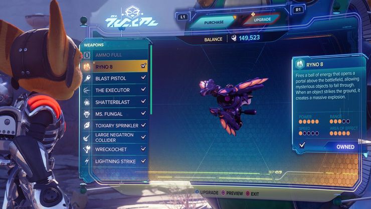 Como en la mayoría de los otros juegos de la serie, el RYNO 8 es el arma definitiva de Ratchet & Clank: Rift Apart. El arma no está disponible hasta el final de la historia, y se necesita un poco de trabajo para desbloquearla.