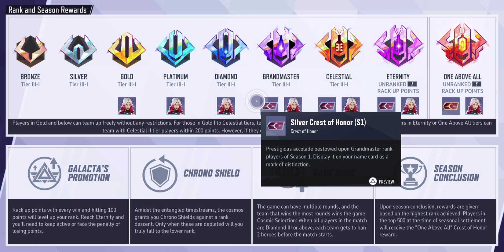 Al alcanzar el rango de Gran Maestro y superior también obtendrás Crestas de Honor que puedes agregar a tu tarjeta de presentación para mostrar tu destreza competitiva.