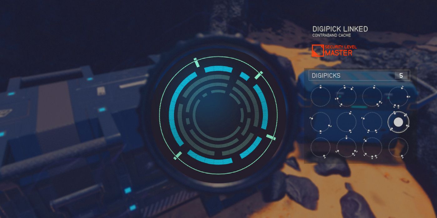 Para los jugadores astutos, el minijuego Digipick es una forma divertida de ganar botín gratis durante el viaje espacial y una excelente manera de encontrar contrabando costoso que se puede vender por mucho dinero a ciertos proveedores. Si eres el tipo de jugador que prefiere explorar en sus propios términos, abrir cerraduras y la habilidad Seguridad son invaluables, ya que muchos puestos avanzados ocultos y fábricas abandonadas tienen mucho botín encerrado.