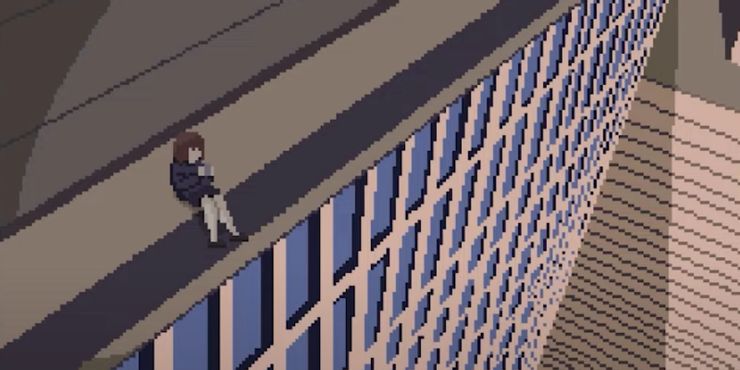 El personaje principal se encuentra en una delgada escalera que gira en espiral alrededor de un colosal pilar de hormigón en el sueño final de “I Look Down”. Leche fuera de una bolsa de leche fuera de una bolsa de leche, y una fuerza cósmica opresiva parece impartir algunas intuiciones misteriosas. Para desbloquear este final, los jugadores deben omitir las dos secuencias de muerte y ayudar al personaje principal a irse a la cama sin distracciones. Además, solo se deben encontrar 3 o 4 de las luciérnagas, ya que encontrar las 6 desbloqueará un final diferente.