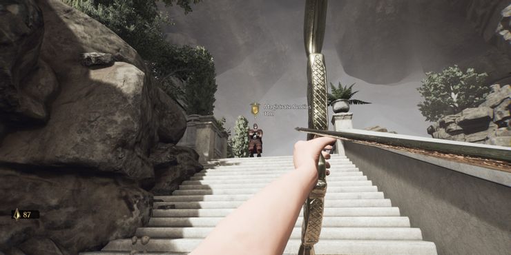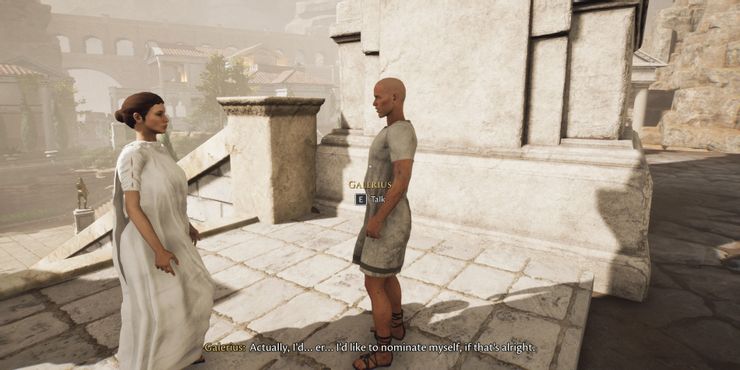 Para el final más básico, se necesitará un arma. Seleccionando el Soldado El fondo hará que el jugador comience con una pistola. En cambio, todos los demás antecedentes de clase deberán dirigirse a los baños romanos y ver cómo Fabia es aplastada dentro del santuario. A continuación, acércate a la entrada principal del baño y enfréntate al Asesino, a quien no se puede disuadir de su misión y romperá la regla de oro. Retroceda rápidamente en el tiempo, advierta a Fabia que se esconda en otro lugar y luego engañe al Asesino mintiendo que su objetivo está dentro del santuario. Será aplastado y su cuerpo buscable en busca de un arco de madera.