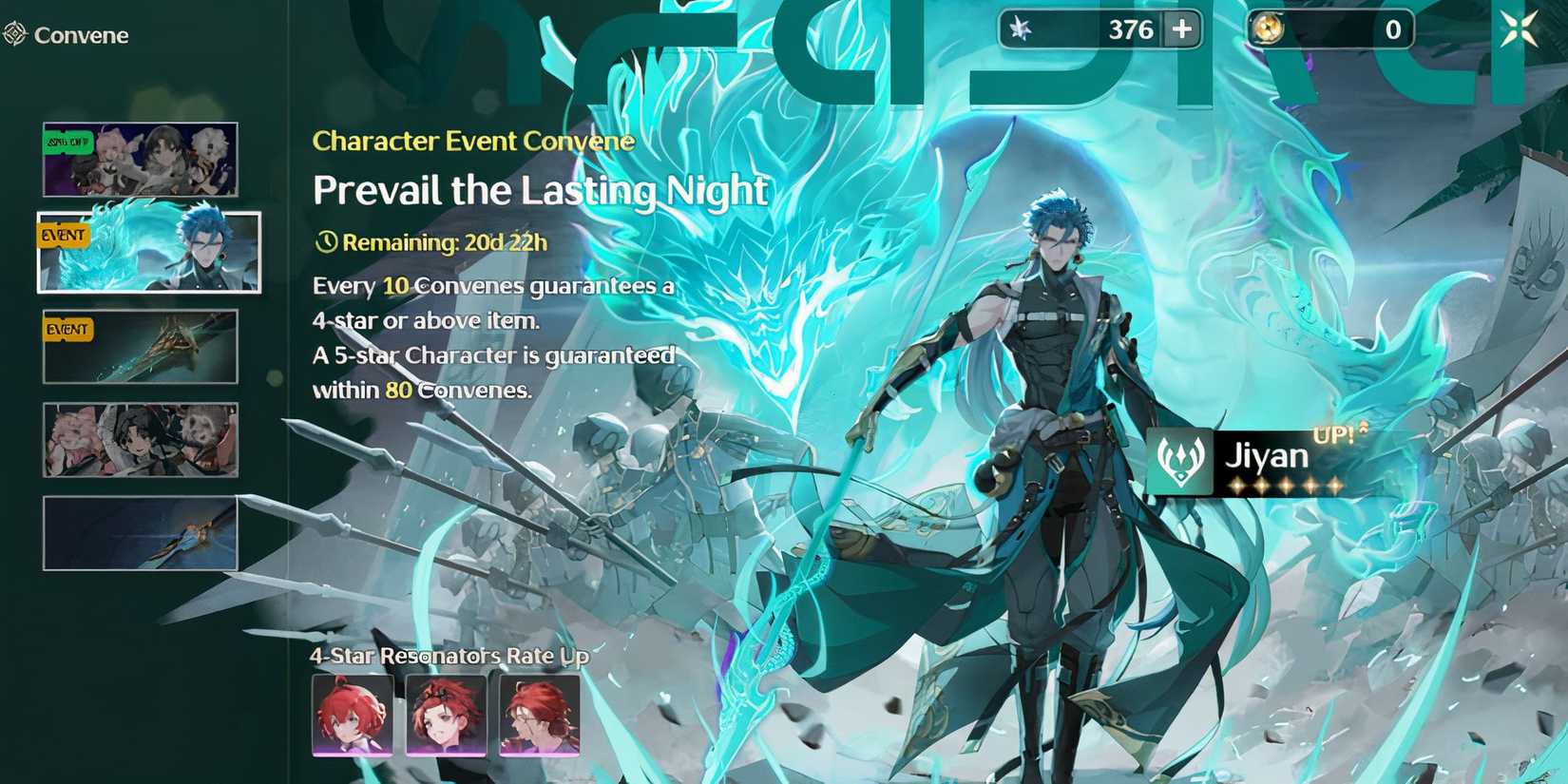 Una vez que haya abierto el menú Convocar, habrá algunos elementos importantes. En la parte superior derecha está la moneda utilizada para sacar personajes de Convenes, Cllamado Lustrous Tides, que funciona como Star Rail Passes en Honkai: carril estelar. Estas mareas se pueden obtener de varias maneras, pero vienen en pequeñas cantidades, así que use sus recursos con prudencia. Si buscas más, puedes completar desafíos de eventos, canjear códigos y subir de nivel en tu rango sindical.