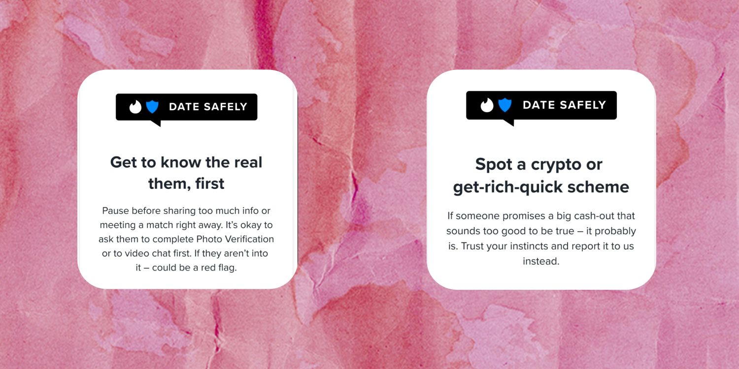 Los usuarios de Tinder, Hinge, Match, Plenty of Fish, Meetic y OurTime han comenzado a recibir esta semana mensajes que contienen información útil para detectar posibles estafas. Match Group dice en un comunicado de prensa que trabajó con expertos en aplicación de la ley y explotación financiera para reunir los mejores consejos para mantener a los usuarios alerta. Hay seis puntos clave en sus consejos, desde mantener las conversaciones dentro de la aplicación el mayor tiempo posible hasta tomar un “pase duro”sobre cualquiera que empiece a ofrecer consejos de inversión.