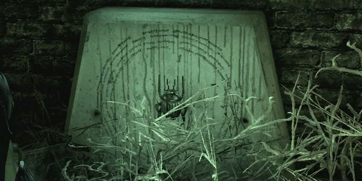 Las grabaciones que explicaban los orígenes de Amdeus podían recopilarse escaneando las placas de las Crónicas de Arkham que aparecían como tablillas de piedra. Cada uno de los coleccionables tenía un escarabajo en el medio y palabras garabateadas en un círculo alrededor del insecto. Como Asilo arkham de batmanLos coleccionables más espeluznantes, las grabaciones fueron creadas por Spirit of Arkham para contar los escritos de Amadeus que recuperó. Spirit of Arkham se siente obligado a continuar con el trabajo de Amadeus curando pacientes mediante experimentos o asesinatos. En el juego, la celda de Amadeus transmite su estado de ánimo al final de su vida. La tumba de Amadeus Arkham también se puede encontrar parcialmente excavada.