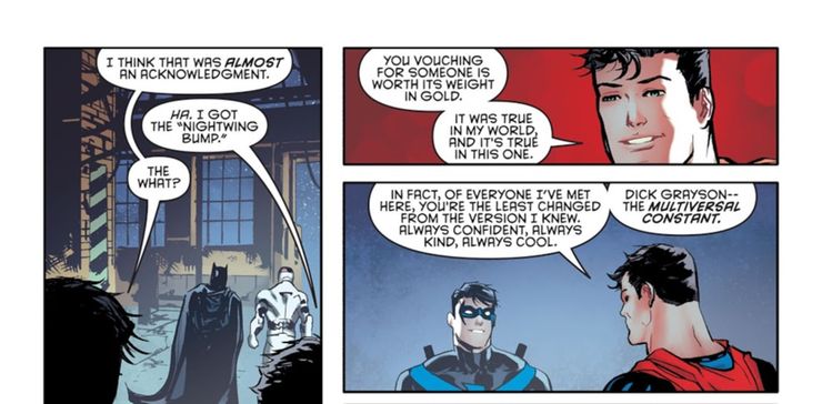 Dick no es el único consciente de su reputación multidimensional. A Batman se le dijo que Nightwing era una “constante multiversal” por otro Variante de Superman en Crisis Infinita. Si bien la posición de Grayson en los múltiples universos no debería sorprender a ningún fanático del héroe, la revelación arroja luz sobre por qué Batman nunca ve los golpes mortales que provienen de Pollyanna, la número uno de DC.