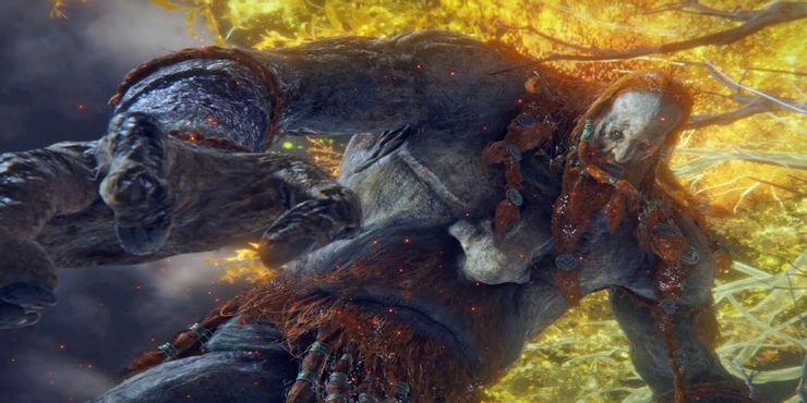 Pero lo que es más convincente es la conexión entre el ex líder de Anillo de Elden‘s Fire Giants y el líder de los Fomorians, Balor. Conocido como una personificación del sol, Balor tenía un gran ojo que causaba estragos al abrirlo. El ojo tenía siete cubiertas que podía quitar una por una, y una vez que se quitaba la última, el ojo emitía un fuego devastador. Los Gigantes de Fuego una vez adoraron a tal deidad. La descripción del Escudo de un Ojo explica que representa “un dios tuerto deforme” eso fue “Una vez adorado por el gigantes,” pero “Se cree que fue asesinado por la reina Marika.Sin embargo, la segunda fase de la lucha contra el jefe del Gigante de Fuego, donde el ojo de este dios tuerto se abre en su pecho, revela que este dios todavía está vivo. Que los Gigantes no solo fueron asesinados por Anillo de EldenLa versión de Tuatha De Danann, pero también adoraba a una deidad influenciada por Balor, muestra que los antiguos enemigos de Marika encuentran sus raíces míticas en los Fomorianos.