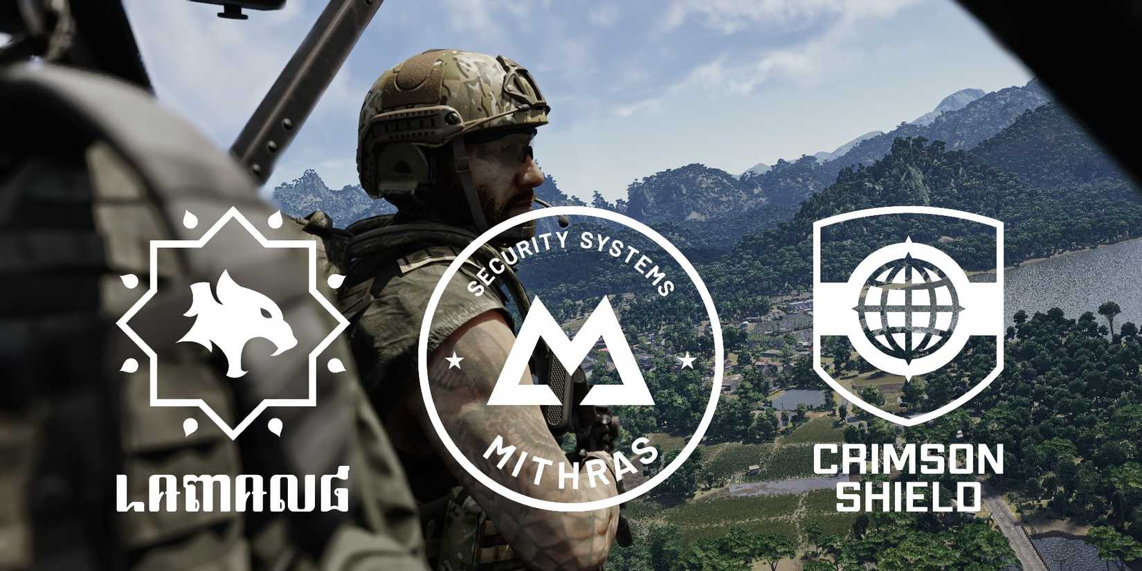 Actualmente hay tres facciones en Guerra de la zona gris: Iniciativa de Recuperación de Lamang, Crimson Shield International y Mithras Security Systems. Cada PMC diferente tiene antecedentes muy diferentes que pueden influir en su decisión. Mithras es un PMC autónomo inspirado en el sistema de la Legión Romana que divide equitativamente el botín según el rendimiento.