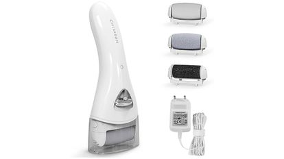 Gracias a su potente motor de dos velocidades (2400 y 2800 rpm), esta lima eléctrica es capaz de eliminar la piel dura rápidamente y sin esfuerzo. Para ello, incluye tres cabezales con rodillos de diferente rugosidad para adaptarse a los diferentes tipos de piel muerta. También incorpora una luz blanca para iluminar el área a pulir y puede usarse de manera inalámbrica, con su batería incorporada, o conectada a la corriente mientras ésta se recarga. Tiene más de 10.000 valoraciones en Amazon.