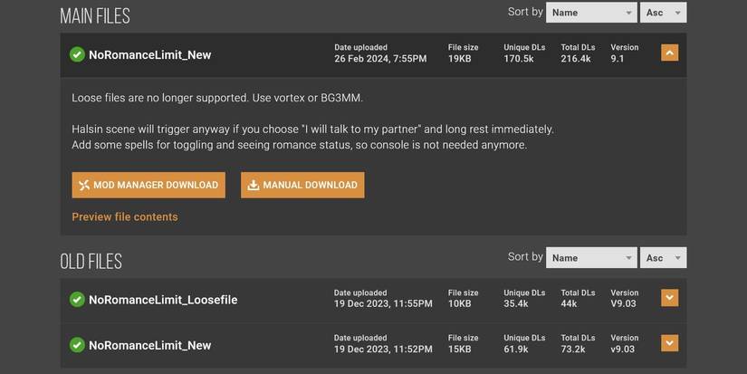 Si estás frustrado por la falta de flexibilidad en las opciones de romance, siempre puedes intentar descargar mods para La puerta de Baldur 3utilizando el La puerta de Baldur 3 Administrador de mods. Actualmente hay más de 9000 mods alojados en Nexusmods.comy cada uno de ellos ofrece algo nuevo al juego. Algunos de ellos, incluido No Romance Limit (Polyamory Mod) de Wilhelm, te permiten tener un romance con cualquiera de los miembros del grupo en cualquier orden sin que te dejen abandonado.