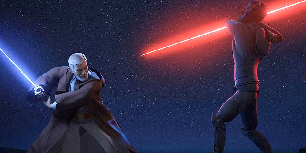 Maul había querido matar a Obi-Wan desde que casi mató a Maul en La amenaza fantasma y lo dejó sin piernas (cuestión que Las Guerras Clon Tuvo que resolver, narrativamente, y finalmente se resolvió con algunas patas de araña y luego la magia de las Hermanas de la Noche de Dathomir). En Rebeldes, El público pudo ver el enfrentamiento final entre los dos.