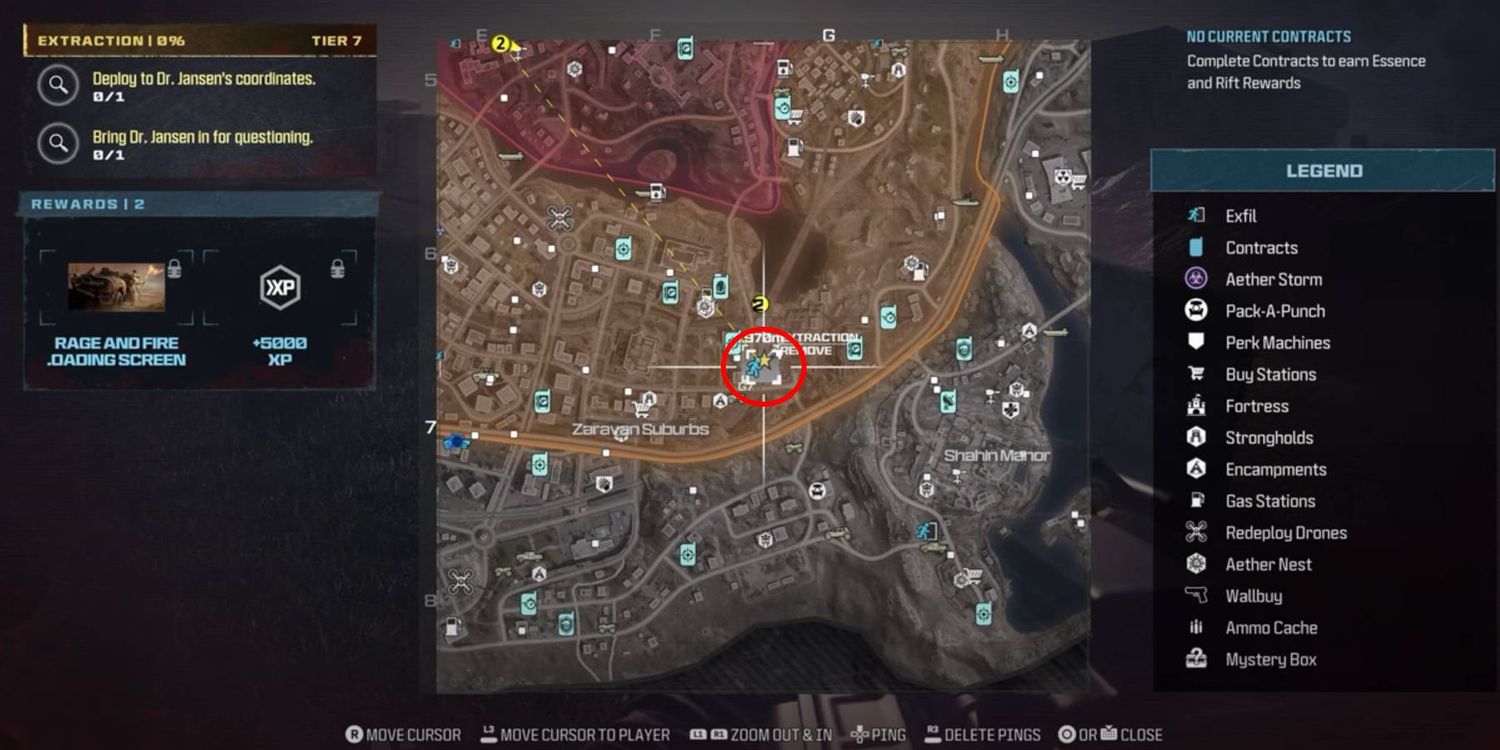 Puede encontrar dónde está el Dr. Jansen Localizar el ícono de exfiltración que aparece un minuto después de ingresar a Urzikstan., que se asemeja a una pequeña figura corriendo hacia una estrella. Este lugar aparece hasta el al noroeste de Shahin Manor y casi directamente al este de los suburbios de Zaravan. Si desea ir directamente a la ubicación del Dr. Jansen, ambas áreas son excelentes lugares para visitar. Modern Warfare 3 Zombis.