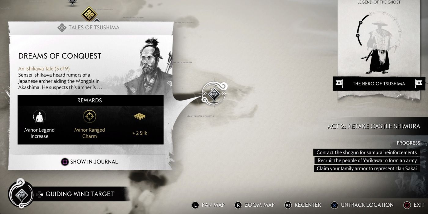 Completa misiones secundarias, intercambia suministros con tramperos y saquea enemigos caídos y asentamientos para ganar seda en Ghost of Tsushima.