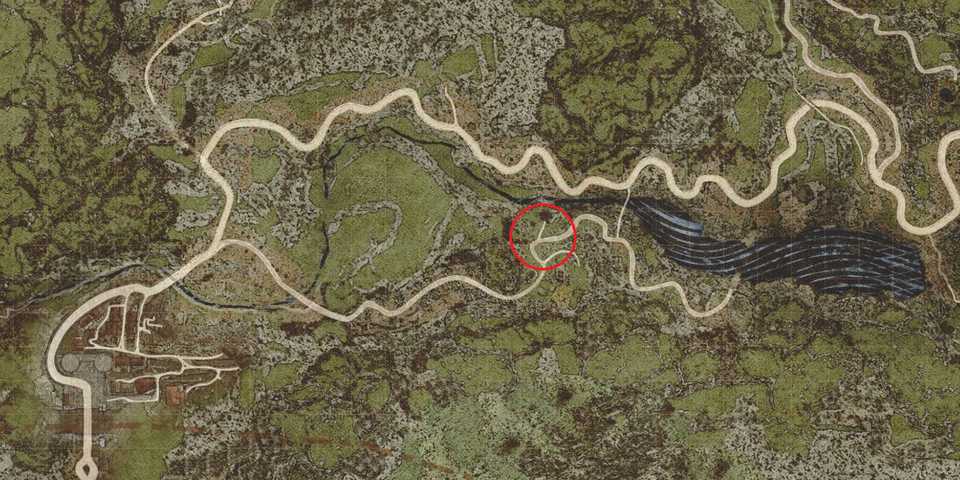 Al noreste de Checkpoint Rest Town, cerca de un campamento junto a un pequeño río. |