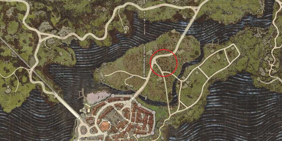 Al norte de Palace Overlook Cape, justo debajo de la carretera que conduce a Old Noble Manor en Nameless Village. |