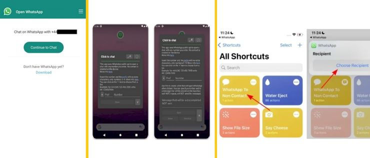Para los usuarios de iPhone, la forma más sencilla de enviar un mensaje de WhatsApp a un número no guardado es mediante el acceso directo de WhatsApp para personas sin contacto. Este acceso directo permite a los usuarios de iPhone iniciar conversaciones con cualquier número con solo escribirlo. Para comenzar a usar este acceso directo, los usuarios primero deben instalar e iniciar el acceso directo. Luego, tendrán que escribir el número en el campo ‘Destinatario’ o copiarlo y pegarlo para iniciar una conversación. También vale la pena señalar que todas estas opciones permitirán a los usuarios elegir entre WhatsApp y WhatsApp Negocios si tienen ambas aplicaciones instaladas.
