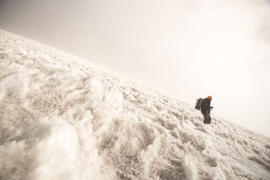 Atardece a 5.350 metros de altitud y las sombras proyectadas sobre el hielo comienzan a estirarse en sentido opuesto al de la mañana. Ni siquiera se ve ya la última cordada que ha intentado hacer cima, tres puntitos negros en mitad del blanco que, tal vez con algún problema de aclimatación, pasaron cerca de Memo Ontiveros con un ritmo lentísimo pero, tras gritar que estaban bien, desaparecieron glaciar abajo. Ahora, Ontiveros —menudo, barba negra algo afilada, piel quemada aunque él diga que no se quema— es la persona que se encuentro en lo más alto en todo México, y apenas ha recogido de nuevo su artilugio, que no es precisamente una mochila. Lleva todo el día trabajando en el glaciar con su casco, lentes polarizados y crampones, y dice que no quiere saber la hora. Pero son las cuatro y media.