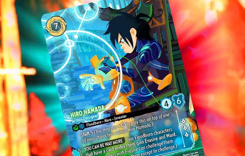 Revela exclusivamente dos tarjetas de promoción de campeonato establecidas y un impresionante Hiro Hamada encantado para Disney Lorcana: Archazia’s Island.