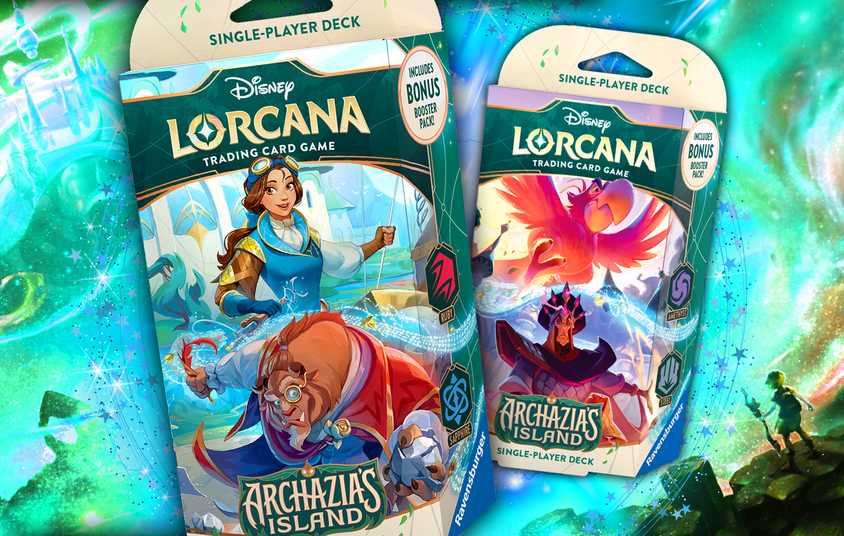 El último set para Disney Lorcana, Archazia’s Island, viene con dos nuevos mazos de inicio de 60 cartas para usar: Amethyst & Steel & Ruby & Sapphire.