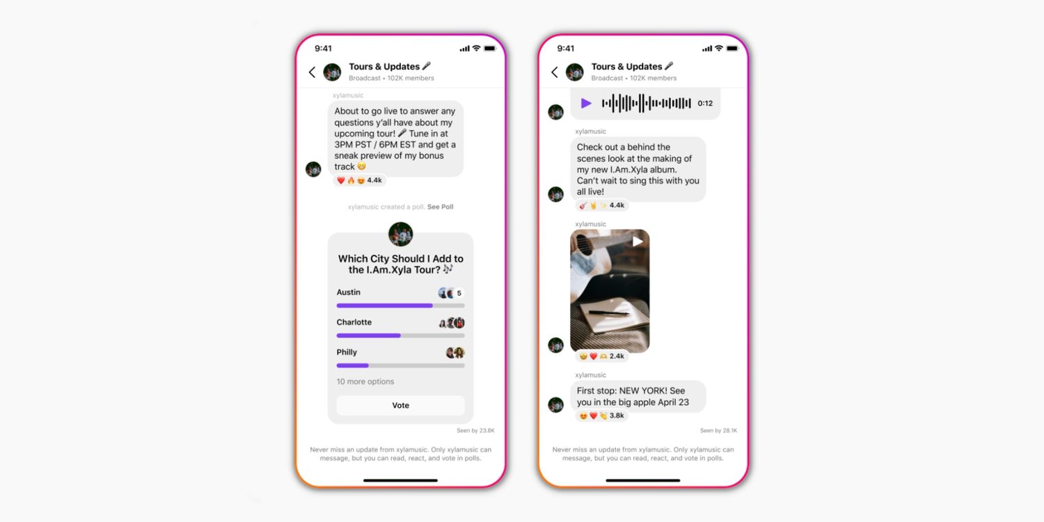 Los canales de transmisión permiten a los creadores de Instagram enviar mensajes de texto, notas de voz, imágenes, videos y encuestas directamente a las bandejas de entrada de sus seguidores, como un mensaje normal, excepto que este contenido se mostrará por separado bajo el nombre del canal. Los creadores pueden utilizar los canales de transmisión para informar hasta un millón de seguidores sobre una nueva publicación, video, evento o cualquier otra cosa que quieran transmitir, actuando como un suave recordatorio. En otras palabras, es una nueva forma para que los creadores interactúen y compartan actualizaciones con sus seguidores.