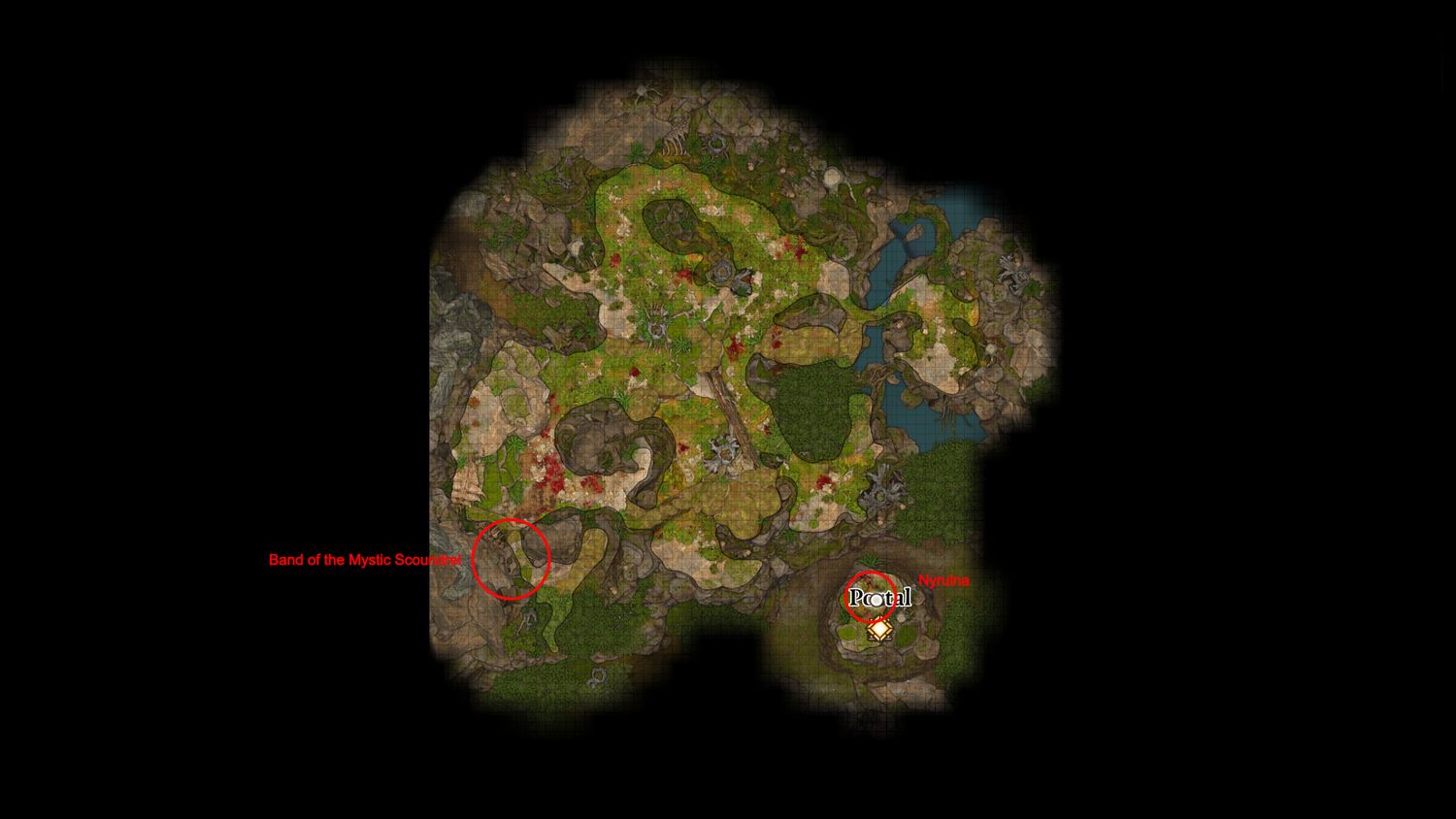 El Banda del Sinvergüenza Místico permite al portador lanzar hechizos de ilusión o encantamiento como acción adicional después de golpear a una criatura con un ataque de arma. Se puede encontrar en un esqueleto en un pequeño campamento al suroeste.