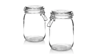 Este pack incluye dos tarros de vidrio transparentes que se cierran herméticamente a través de una tapa con anillo de gama y sello de metal. Tienen capacidad para 1.000 mililitros y se trata de unos tarros multiusos que, además de para guardar harina, se pueden utilizar para conservar cereales o pasta. Tienen un diseño bonito y práctico para que la cocina se mantenga siempre ordenada y en equilibrio.