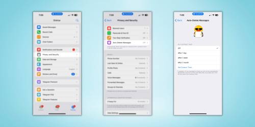 Como menciona la publicación oficial del blog, los usuarios de Telegram pueden establecer un temporizador global de alía automática, que se aplica a todos los nuevos chats y grupos. Con la función en su lugar, Telegram eliminará nuevos mensajes en chats personales o grupales después de la hora establecida. Para habilitar el temporizador global de la entrega automática, abra la aplicación, toque el icono de configuración en la esquina inferior derecha y seleccione ‘Privacidad y seguridad. ‘ En el menú, toque ‘Mensajes automáticos.‘En la siguiente pantalla, elija entre las duraciones proporcionadas, que incluyen un día, una semana y un mes. Sin embargo, los usuarios también pueden establecer un temporizador personalizado personalizado, que varía de un día a un año.